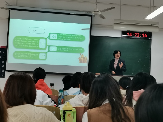 毛卉副校长为研究生开展形势与政策课程讲授。她通过详实的例证,让同学们深刻体会到展示了“人类命运共同体”的美好图景:每个民族、每个国家的前途命运都紧紧联系在一起,应该风雨同舟,荣辱与共,把世界各国人民对美好生活的向往变成现实。