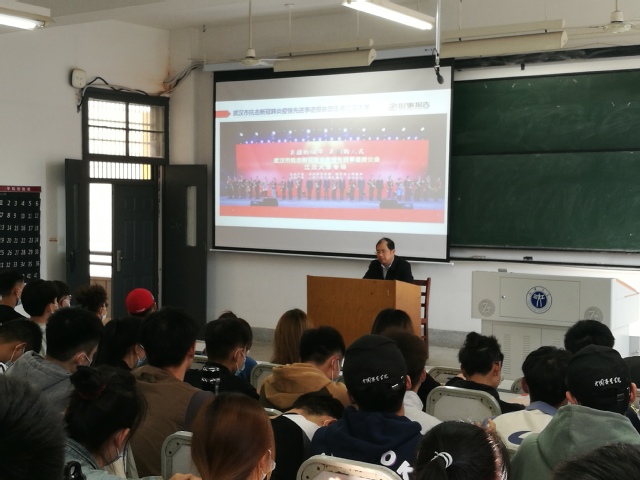 自2020年10月以来,校领导班子成员纷纷走进教室,走进课堂,讲授思政课常态化。校党委书记张幸平以“读懂抗疫大考的中国答卷”为主题分别在10月27日下午、11月12日下午,在J01A201教室为2019级人文学院历史专业和2019级体育学院200余名学生讲授形势与政策课。张书记指出,抗击新冠疫情的这张“中国答卷”,彰显着中国共产党的执政理念,记录着中国人民的艰苦努力,见证着中华民族的坚韧顽强,书写着命运与共的责任担当,历史不会忘记,人民会永远铭记。