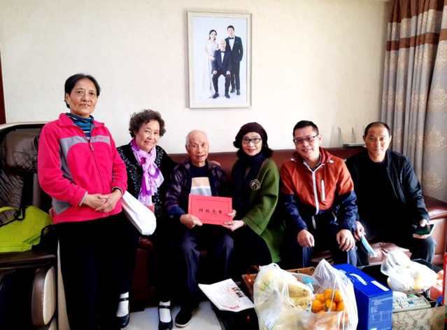2020年11月3日,离退休党委书记张艳、党委副书记李海涛及刘汉明同志与马院退休支部一起登门看望特殊党费捐款人吴享彬老人。