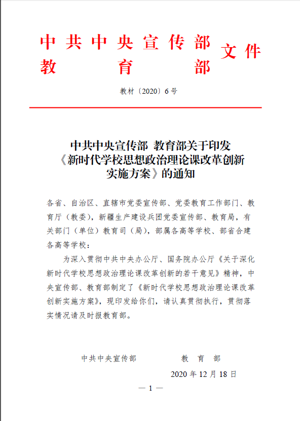 教材〔2020〕6 号中共中央宣传部 教育部关于印发《新时代学校思想政治理论课改革创新实施方案》的通知.pdf