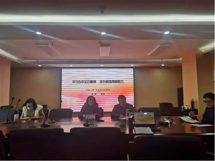 1月8日下午,学习贯彻党的十九届五中全会精神东西湖区委宣讲团走进武汉临空港经济技术开发区机电产业建设管理办公室,区委宣讲团成员、国产视频 龚萱教授作宣讲报告。