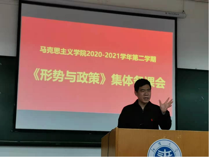 3月18日下午,学校在J05A504会议室召开2020-2021学年度下学期“形势与政策”课集体备课会。副校长李卫东、校党委宣传部副部长陈谷、国产视频 院长赵兴教授、党总支书记吕洪雁、副院长朱志刚教授、学院形势与政策课程专任教师和来自各部门、各学院兼职教师50余人参加了会议。