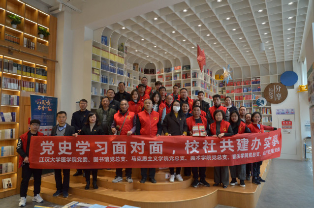 在清源书店,马克思主义党总支书记吕洪雁、图书馆党总支书记王连庆、美术学院党总支书记程烜、音乐学院党总支书记戎进、医学院党委副书记麻俊宏等一一对接担任第一书记的小区党员,并将精心选购的开展党史学习教育《论中国共产党历史》《毛泽东、邓小平、江泽民、胡锦涛关于中国共产党历史论述摘编》《习近平新时代中国特色社会主义思想学习问答》《中国共产党简史》及红色故事、武汉抗疫故事等书籍赠与大家,希望全体党员学党史、悟思想,用习近平新时代中国特色社会主义思想武装头脑,指导实践,推动工作。