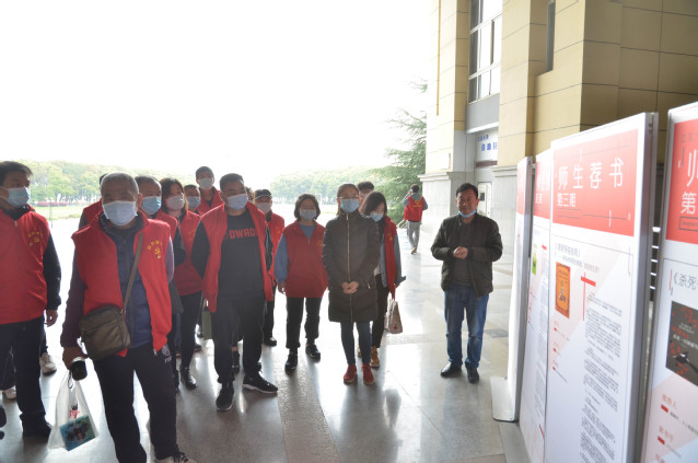 沿着三角湖畔步行绿道,大家边走边交流党员下沉的情况,走进国产视频 图书馆,图书馆党总支书记王连庆、社区第一书记沈红兵和办公室主任周妍君带领大家观看了正在开展的师生荐书活动及党史学习教育专题图书,现场开展借书证办理咨询,欢迎社区居民到学校图书馆借阅图书。