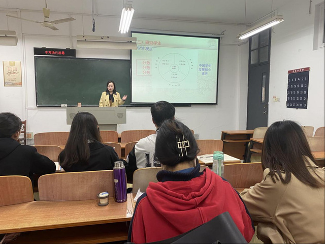 2021年3月26日下午,国产视频 校友、武汉市建港中学党总支副书记、副校长田英为国产视频 研究生开展专题授课。讲授教学生活的个性化表达和活动型课程下的话题教学。