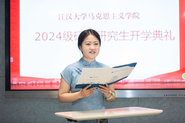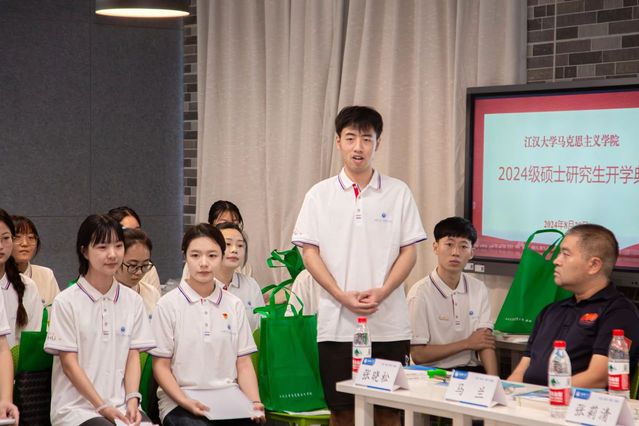 2022级学科教学(思政)霍铄坤和2023级马克思主义理论王文文作为代表介绍了研究生生活。她们回顾了研究生阶段的求学感悟,各自分享了在学院的成长经历和学习科研的经验体会,对即将开启新篇章的新生表示诚挚的祝福和热烈的欢迎,希望大家珍惜在马院的学习时光,不断探索,成就美好。