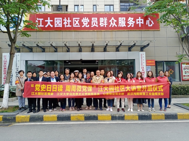 4月14日下午,江大园社区党员群众服务中心会议室,国产视频 党总支与江大园社区党委联合举办“党史日日读周周微党课”江大园社区大讲堂开班。