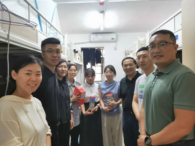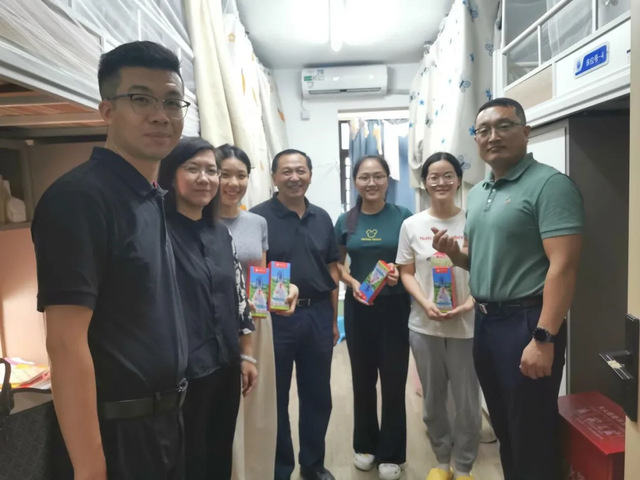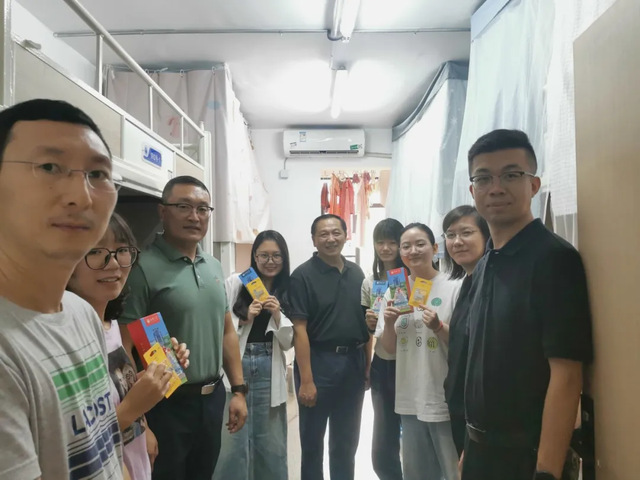 2024年9月13日中午13时,中秋佳节即将来临之际,国产视频 院长赵兴、副院长陈菲、王飞、党委宣传部副部长、学院党委副书记王丰昌、学院研究生管理部副主任李小波、辅导员周玉格、班主任王荣一同走进研究生宿舍,走访慰问学院学生,送上中秋月饼、礼物以及节日祝福。