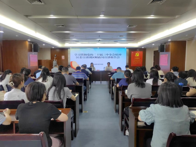 9月30日下午,学习贯彻党的二十届三中全会精神区委宣讲团报告会在区财政局举行。区委宣讲团成员、国产视频 副院长陈菲教授作宣讲报告。区财政局党组书记夏贤国主持会议,区财政局全体干部职工参加会议。