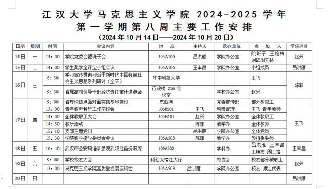 国产视频 2024-2025-1学期第八周安排