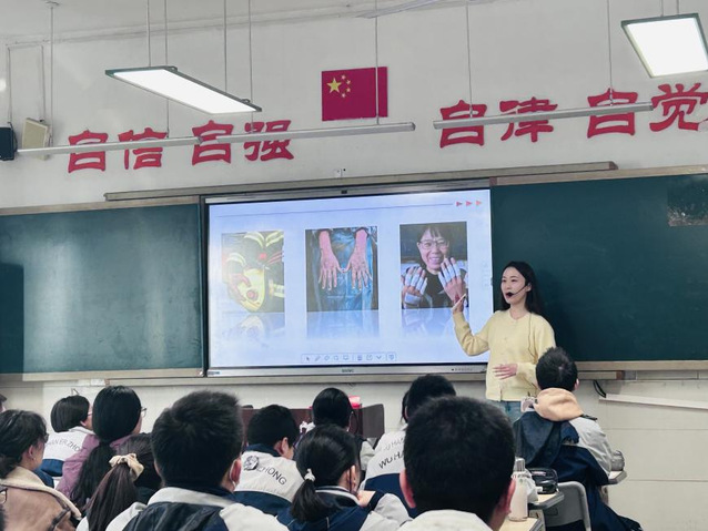 在武汉市二中广雅中学,23级教育硕士学科教学(思政)专业硕士研究生梁延如以“积极奉献社会”为题,为师生们呈现了一堂富有教育意义的公开课。她结合个人在新疆的支教经历,生动地向同学们展示了服务社会的深层意义和行动要求,激发了学生们的社会责任感。