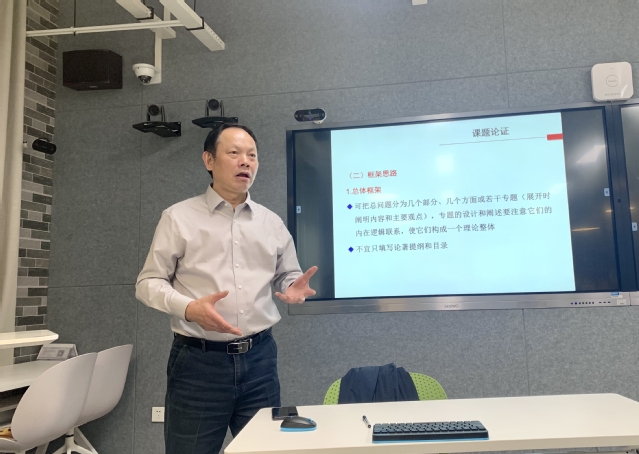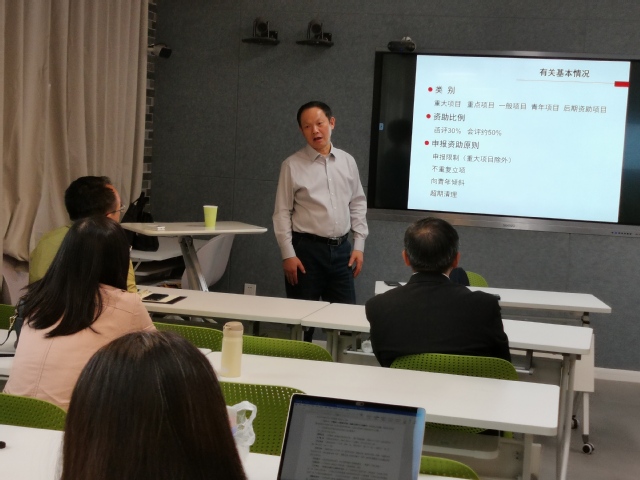 2021年10月14日下午15:30,在国产视频 J05B401智慧教室,武汉大学哲学学院汪信砚教授应邀为国产视频 教师开展国家社科基金申报辅导讲座。讲座由学院院长赵兴教授主持,副院长朱志刚教授、国产视频 教授代表和其他学院教师参加。