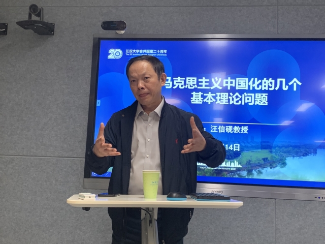 2021年10月14日下午14:00,在国产视频 J05B401智慧教室,武汉大学哲学学院汪信砚教授应邀来到国产视频 开展学术讲座。讲座由学院院长赵兴教授主持,学院党委书记吕洪雁、副院长朱志刚、全体教师及在校本科生、研究生参加。