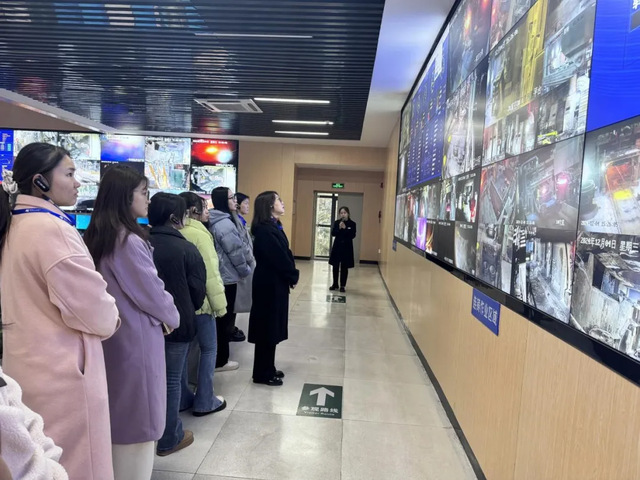 跟随讲解员的脚步,师生们参观了炼钢5G智慧钢厂指挥中心,进门,最突出的就是巨大的智慧屏,旁边200多块监控屏上数据闪烁。屏幕内,炼钢的各项工艺过程清晰可见,现场工作人员较少,只需在操控室轻点鼠标就能完成作业现场高难复杂的生产任务。