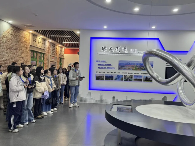 随后,在讲解员的带领下,师生们参观了“工业遗产”、“情暖武钢”、“流金岁月”、“智慧制造”、“三城同创”等展厅,其中的莫比乌斯环象征传承历史、面向未来。
