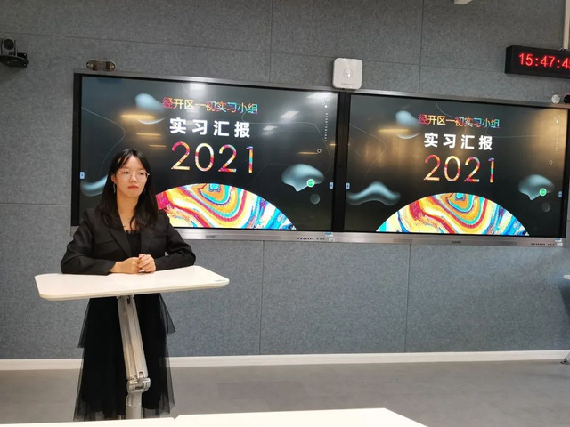 校团委实习小组代表张雨欣从实习成员与任务和实习收获展开汇报。小组成员们全程参与学校2021级学生开学典礼、国产视频 合并组建二十周年校庆活动、每天与各类表格打交道、每天“奔波”于校园内,为老师们递送各种文件与材料;为新生们录入助学贷款信息,解决同学们的“后顾之忧”;参与江大操的录制工作,展示江大学子的风采;奖证认定盖章等,繁忙而充实。