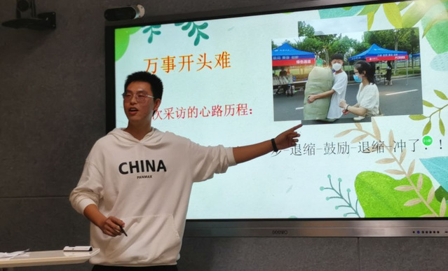 校党委宣传部实习小组由徐振午同学汇报,他结合采访实习的实践经历分享了第一次采访的过程以及实习成长的过程,生动地展现了整个实习过程中的成长变化。宣传部实习小组了解了媒体运营的流程,学会了与人打交道的能力,学会处理生活、学习、工作的矛盾。在学校合并组建20周年宣传片拍摄、迎新、感动江大人物采访、学校官微运营和学院新媒体宣传中发挥了作用。