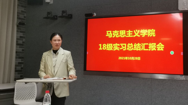 2021年10月28日下午,学院2018级思想政治教育专业实习报告总结大会在J05B401召开,同学们汇报了实习的经历与收获,学院全体院领导、校外实习指导教师、带队老师、专业负责人、各教研部主任、副主任、班主任及全体18级思想政治教育专业学生参加了总结会。会议由副院长朱志刚主持。