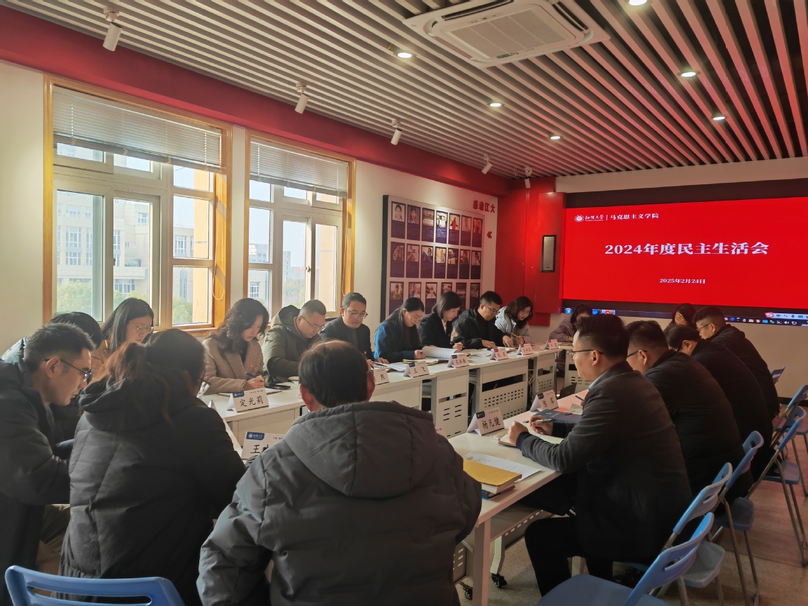 此次民主生活会的主题是深入学习贯彻习近平新时代中国特色社会主义思想,全面贯彻落实习近平总书记考察湖北重要讲话精神,巩固深化党纪学习教育成果,综合发挥党的纪律教育约束、保障激励作用,为进一步全面深化改革,持续推进一流学科建设,为奋力谱写高水平城市大学建设新篇章贡献马院力量提供坚强纪律保证。