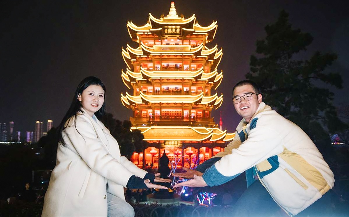 随着光影的暗淡,打卡“夜上黄鹤楼”之行也即将结束,大学生们仿佛仍沉浸在与历史的对话中。