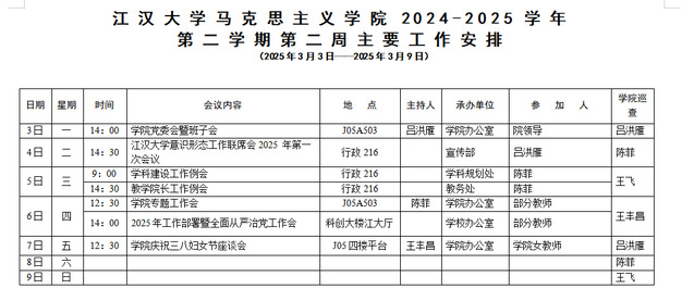 国产视频 2024-2025-2学期第二周安排