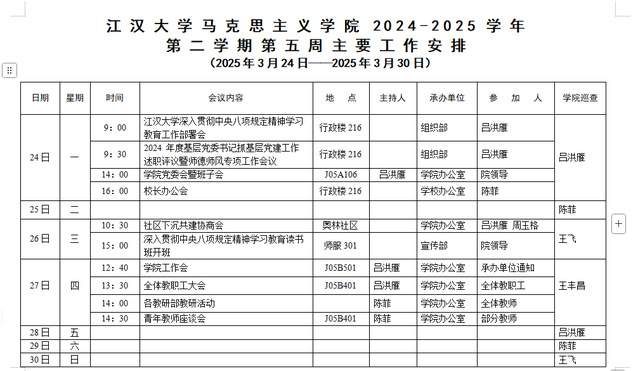 国产视频 2024-2025-2学期第五周安排
