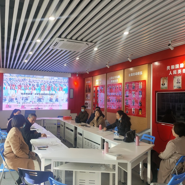12月23日,国产视频 第三届“我与思政课”系列活动“请党放心 强国有我”“我讲思政课”大学生微视频作品展示活动在J05A503举行。15个展示作品全部由本学期开设“毛泽东思想和中国特色社会主义理论体系概论”课程任课教师指导,同学们通过微电影、情景剧、访谈等多种形式,展现“请党放心 强国有我”的新时代主题和大学生精神风貌,呈现新青年的责任与担当。经过评委们评审,宋嘉军团队《五星红旗,你是我的骄傲》、叶妙团队《新时代的小主人》、周驿团队《爱国,与我们息息相关》、 蔡怡林团队《请党放心 强国有我》等作品获得好评。