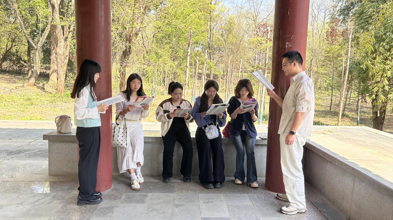 读书会在一处视野开阔、绿树成荫的小亭上,为阅读分享营造了宁静而惬意的氛围。同学们饱含深情地朗诵并品读了马克思主义理论的经典篇章,读原著、学原文、悟原理,将马理论经典作品的韵味展现得淋漓尽致。在书籍分享环节中,大家介绍自己近期阅读的书籍,通过生动的讲解,激发了同学们对书籍的热爱,让大家在思考中收获了心灵的成长。易老师对学生的分享进行了细致点评,引导学生从不同角度深入理解书籍内容。