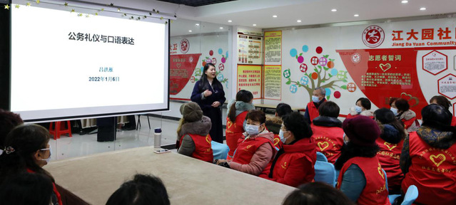 “麻妈妈骑马马慢麻妈妈骂马慢”居民朋友也跃跃欲试,争先恐后念绕口令。主讲人时而风趣幽默时而妙语连珠,引得台下响起阵阵笑声。从武汉方言与普通话的区别到轻声重读、呼气吸气等发音方式;从形体礼仪要点到会议座次排序,“讲座深入浅出,干货满满,既实用又接地气。”