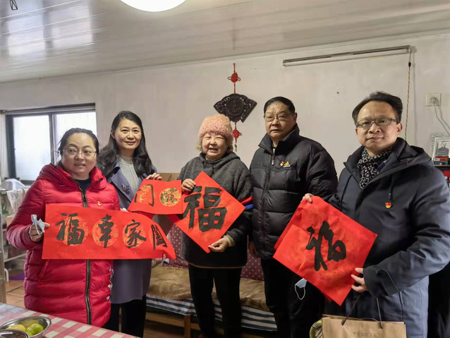 赠书活动结束后,各基层党组织的党员们在社区负责人的陪同下,将美术学院师生提前写好的春联和“福”字送到居民家中。一副副承载着新春祝福的春联令居民们高兴不已,纷纷表达谢意。