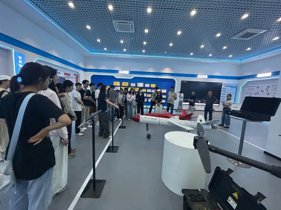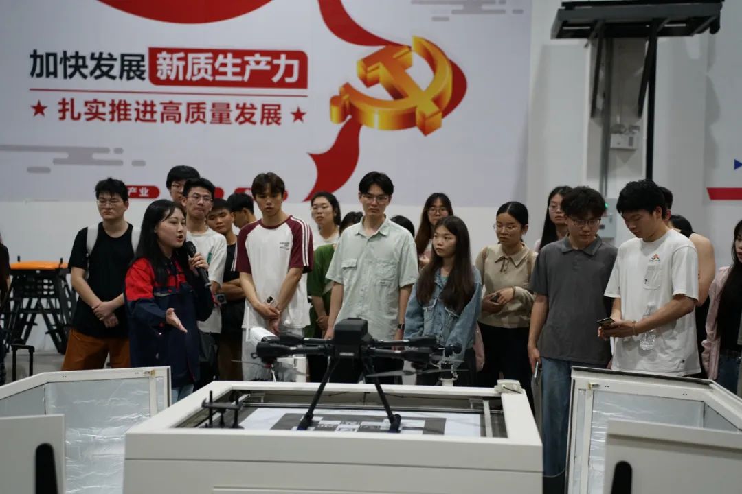 活动现场,学生们首先参观了智能化生产车间,零距离观摩了采用5S管理标准的无人机装配流水线。企业技术负责人现场演示了“低成本高性能”的无人机核心部件制造工艺,生动诠释了新质生产力对传统制造业的革新作用。在无人机展厅,各型号工业级无人机实物展示引发了学生们对“人机协同”新型劳动形态的热烈讨论。