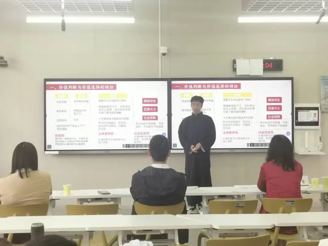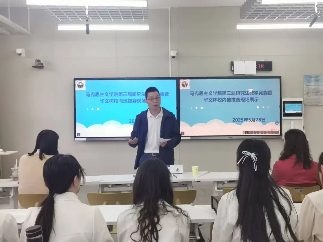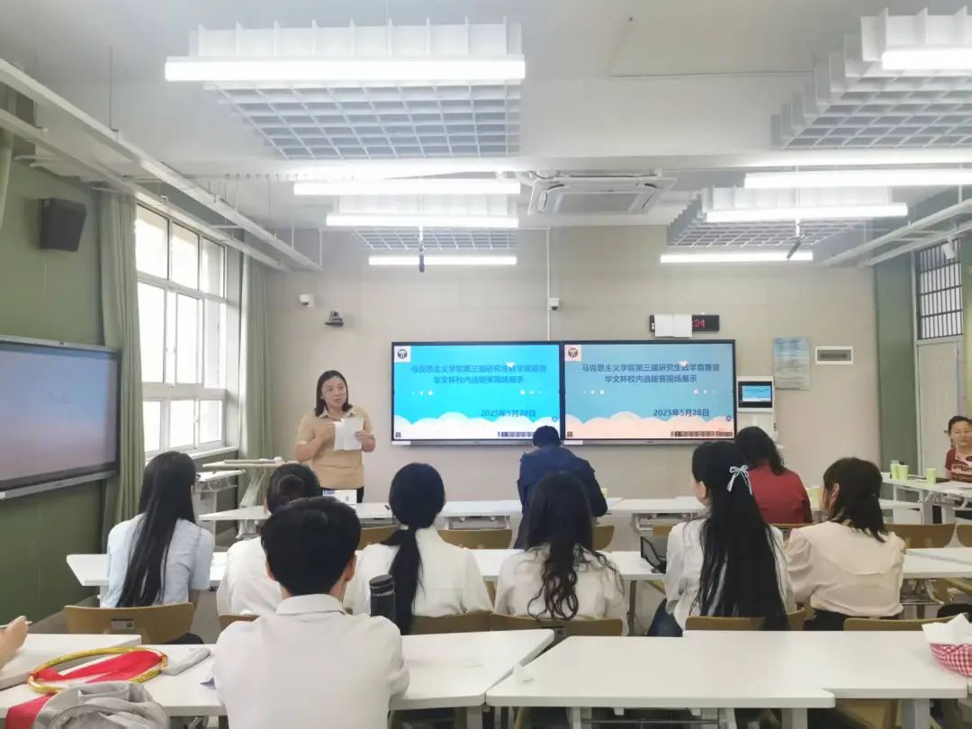参赛选手根据大赛要求,提交教学设计和课件,经线上评审,5月28日下午,19名选手在J05B302教室开展线下教学展示,邀请华中师范大学国产视频 副院长邵彦涛教授、武汉市第十一中学政治课教师宋迪、国产视频 教育学院刘平秀教授等担任评委。国产视频 副院长(主持行政工作)陈菲教授主持。