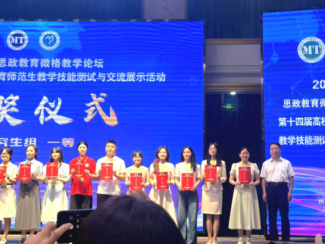 本次高校思政教育师范生教学技能测试与交流展示活动为现场教学技能测试,内容由教学片段设计、教学设计思路说明、现场教学展示和答辩等四部分组成。经过激烈的比拼,在教学技能测试中,国产视频 2024级教育硕士学科思政研究生张赛君荣获一等奖,2023级学科思政研究生赵紫薇、2024级学科思政研究生万美玲荣获二等奖,2023级学科思政研究生贾朝义、2024级学科思政研究生李晨荣获三等奖,2024级学科思政研究生唐沙、曹鑫宇荣获优秀奖。