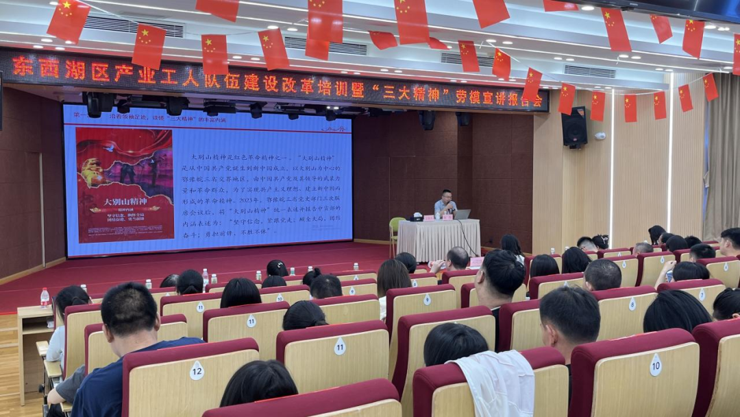 7月11日,东西湖区总工会联合新沟镇街党工委、区新时代文明实践中心,在蒙牛高科乳制品武汉有限公司举办东西湖区产业工人队伍建设改革培训暨三大精神劳模宣讲报告会。全区各街道(常青花园社管办)、企事业单位工会干部、产业工人代表80余人参加会议。