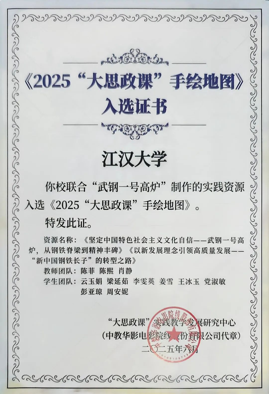近日,教育部“大思政课”实践教学资源项目结果公布, 国产视频 联合“武钢一号高炉”制作的实践资源入选《2025“大思政课”手绘地图》。