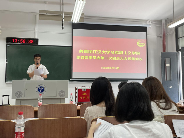 9月13日下午,共青团国产视频 总支部委员会第一次团员大会在J05B112召开。国产视频 党委书记吕洪雁、校团委副书记、国产视频 党委副书记吴云龙、辅导员周玉格及全体研究生参加本次会议,会议由20级教育硕士学科教学(思政)研究生王颖臻主持。