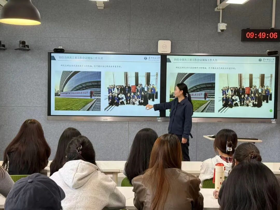 在讲座中,张世慧和同学们分享了在江大求学的经历,2018年9月,来到江大,作为新起点,她开启了“疯狂充电”模式。读研期间不仅系统学习学科思政的相关理论知识,还积极参加多次教育见习,从“不知如何讲课”的新手,逐渐成长为能根据学情设计课堂的准教师。她利用课余时间担任校党委组织部助管,编辑“江大微党建”公众号、审核入党志愿书,在行政实践中锻炼了细致高效的工作能力。她积极参与全国关工委大会志愿服务,非常充实的度过了三年校园时光。