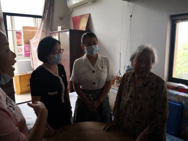 2022年9月20日上午,国产视频 与继续教育学院一行7人前往对口下沉社区--奥林社区开展“下基层、察民情、解民忧、暖民心”实践活动之重阳节慰问。国产视频 对口户为一名年近90岁的老人,院党委书记吕洪雁送上学院班子成员捐赠购买的慰问物资。大家和老人拉拉家常说说话,谈谈过去展望未来。老人长期独居在家,却始终与书为伴,保持阳光乐观。
