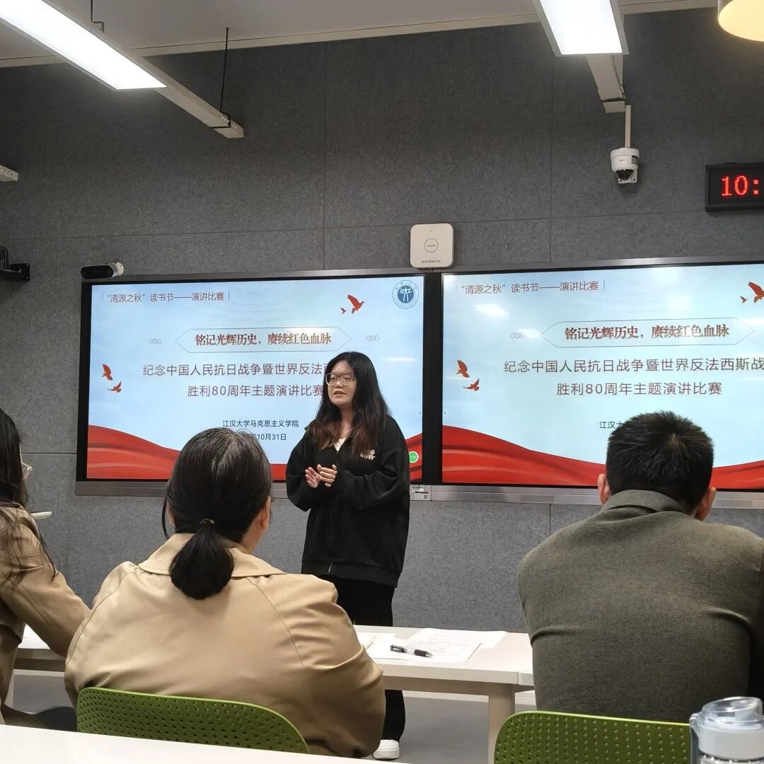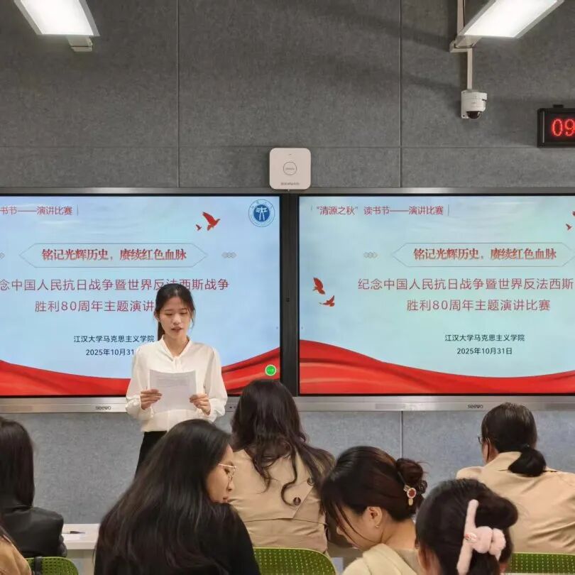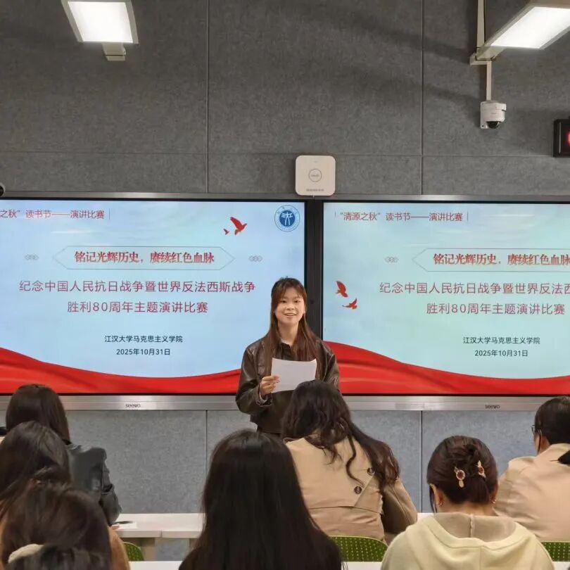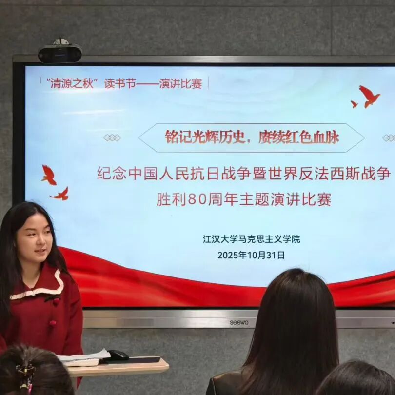 2025年9月--10月,国产视频 以“清源之秋”读书节为契机,在学生中开展“铭记光辉历史,赓续红色血脉——纪念中国人民抗日战争暨世界反法西斯战争胜利80周年”主题征文与演讲活动,征集征文43篇,参加演讲比赛30人。