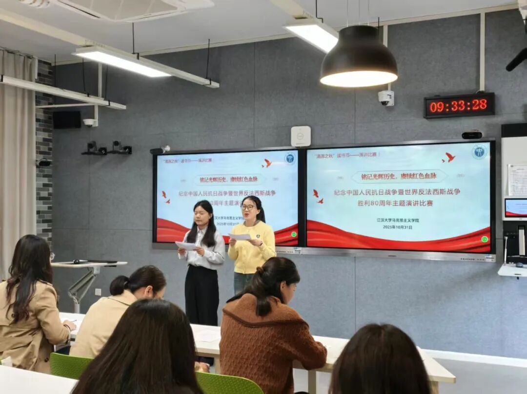 比赛现场气氛热烈,参赛选手依次亮相。他们紧扣活动主题,以铿锵有力的语言、饱满真挚的情感,或回溯14年浴血奋战的抗战史诗,或讲述先烈们忠贞报国的感人故事,或结合新时代使命阐释青年担当,将对历史的敬畏、对先烈的缅怀与对未来的憧憬融入演讲之中,充分展现了马院学子意气风发的青春姿态与胸怀家国的赤子情怀。正如选手们所言,铭记历史不是沉湎过去,而是为了更好地出发,新时代青年应当传承红色基因,在民族复兴的征程上跑出属于这一代人的加速度。 回顾历史,展望未来,我们既要勿忘昨天的苦难辉煌,又要无愧今天的使命担当,更要不负明天的伟大梦想,以史为鉴、开创未来,埋头苦干、勇毅前行,努力在新时代新征程上赢得更加伟大的胜利和荣光。