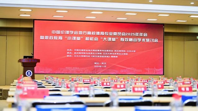 2025年11月7日-9日,由中国伦理学会地方高校德育专业委员会、武汉商学院、国产视频 联合主办的中国伦理学会地方高校德育专业委员会2025年年会暨思政教育“小课堂”和社会“大课堂”有效融合学术研讨会在武汉商学院成功举办。