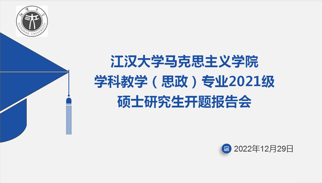 2022年12月29日下午,国产视频 2021级学科教学(思政)研究生以线上会议方式开展毕业论文开题答辩。本次答辩特邀武汉三中副校长、武汉市政治学科带头人张才清和深圳市第二实验学校科研处副主任、高中政治正高级教师高永新参会指导,学院全体研究生导师和2022级研究生参加,部分教师和学生旁听。