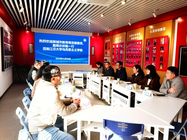 为深入推动麻城市大中小学思政课一体化建设,11月28日上午,麻城市教育局党委委员、副局长林魁、麻城市教育局基础教育股负责人赵咏芳、麻城市第一高级中学副校长左希利、麻城市教育局基础教育股干事秦沛玲、麻城市第十小学书记李伟霞、麻城市第六初级中学教务主任项金锋、蕲春县教育局党组成员、副局长李向阳等到国产视频 调研。学院党委书记吕洪雁、副院长王飞、邱国勇教授、廖宇婧副教授、定光莉、王荣、李云龙、王艳梅等教师代表参加了调研。
