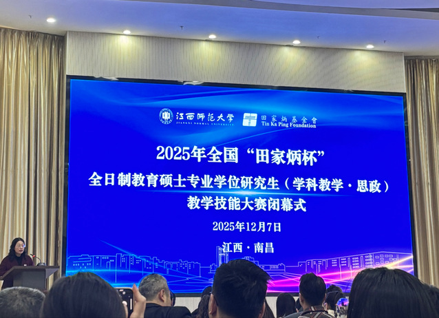 2025年12月5日至7日,2025年全国“田家炳杯”全日制教育硕士专业学位研究生(学科教学·思政)教学技能大赛在江西师范大学顺利落下帷幕。本次大赛由田家炳基金会冠名,全国教育硕士专业学位研究生教学技能大赛专家委员会指导,江西师范大学主办,是国内具有广泛影响力与较高规模的教育硕士教学技能竞赛之一。
