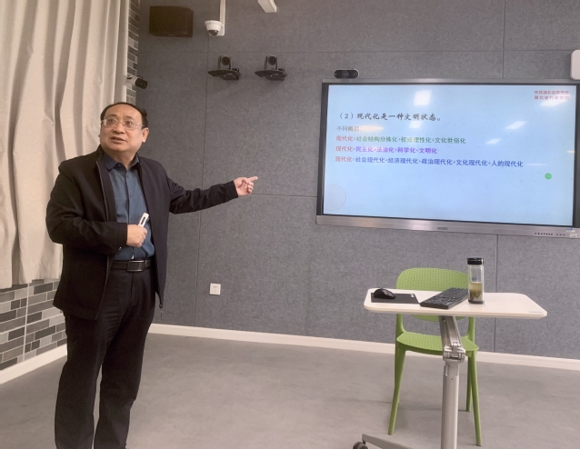郝国庆以“坚持以中国式现代化全面推进中华民族伟大复兴”为题,从中国式现代化是实现中华民族伟大复兴的光明大道、西方现代化的代表理论和世界实践教训、中国式现代化的科学内涵和中国特色、中国式现代化的战略安排和根本原则等四大方面,深刻阐述中国式现代化的中国特色、本质要求、重大原则,对党的二十大精神进行了详细解读。