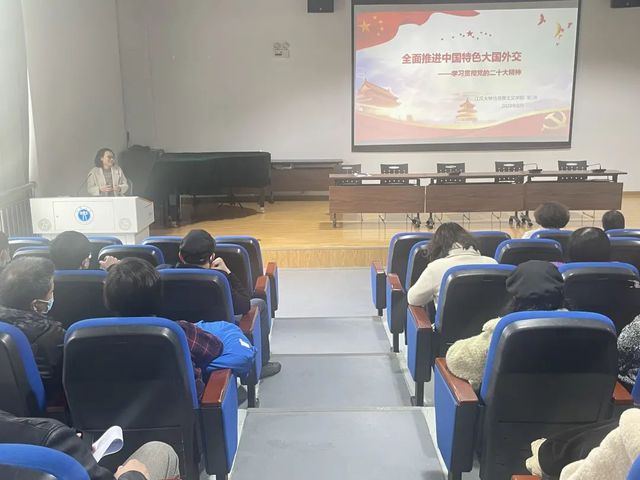 彭沛老师以“全面推进新时代中国特色大国外交”为题,从中华民族伟大复兴的战略全局、推进高水平对外开放、新一轮科技革命和产业变革蓬勃兴起、世界经济中心位移及全球化进入新阶段、人类文明形态多样化发展五个方面为大家展开深入浅出、内涵丰富的讲解,指导师生全面学习、全面把握、全面落实党的二十大精神,推动了党的二十大精神落地生根。