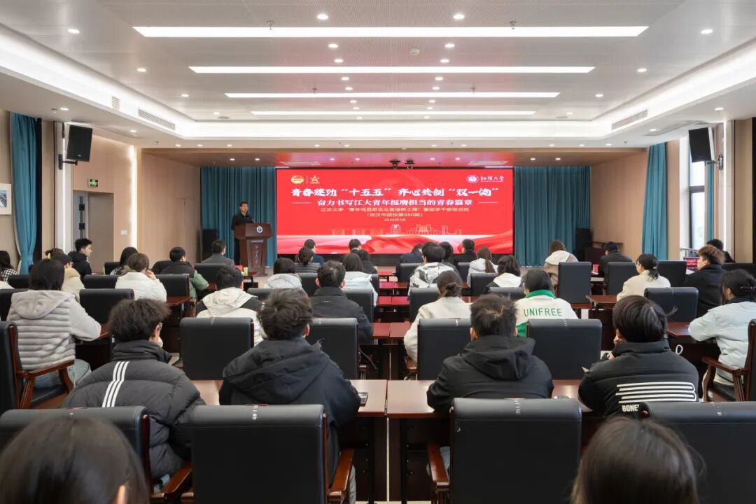 青马班学员代表、获评全国优秀共青团员称号的李德鑫同学分享了自己的成长经历,号召大家以信仰为炬、以奋斗为灯,用实际行动诠释新时代团员的责任与担当,在青春赛道上奋勇争先。