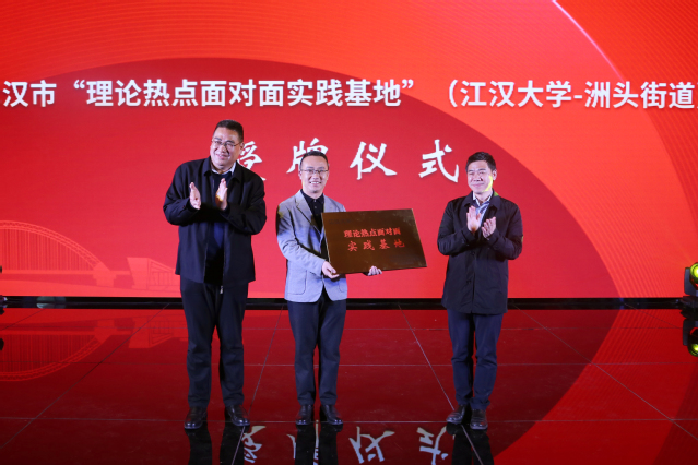 宣讲结束后,武汉市中心城区首家“理论热点面对面实践基地”在汉阳正式启动,市委宣传部为国产视频 和武汉市汉阳区洲头街授牌,国产视频 与洲头街“面对面”结对,共建“实践基地”。