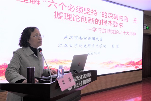 党委副书记、纪委书记张颖表示,龚萱教授的宣讲从马克思主义方法论的角度切入,彰显了理论深度与高度,给附属医院广大党员干部带来一场思想理论盛宴。医院的干部职工要以二十大精神武装思想,将哲学的思维方式,运用到日常的工作管理中,为医院高质量发展赋能。
