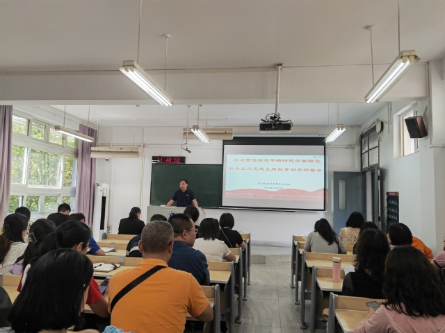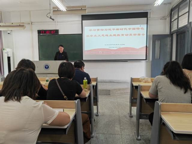 院党委书记吕洪雁传达了学校党委书记覃道明在国产视频 学习贯彻习近平新时代中国特色社会主义思想主题教育动员大会的讲话精神及市委第七巡回指导组组长、市委统战部原一级巡视员刘毅在学校主题教育动员大会上的工作要求。吕洪雁结合学院工作实际,就开展主题教育的重大意义、总体要求、目标任务和着力解决的突出问题等进行深入动员。要把“学思想、强党性、重实践、建新功”的总要求贯穿在主题教育的全过程;思政课教师要先学一步、学深一层,不断提高课堂教学效果,引领学生广泛参与、深度体会,将党的创新理论学习与学习工作实践相结合,切实提升主题教育效果;要深入一线、深入师生,聚焦师生关切大兴调查研究之风;要锚定目标、踔厉奋发,切实推动学院事业高质量发展;要对标对表认真检视整改;要科学谋划、统筹推进,常态长效做好建章立制。